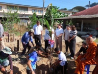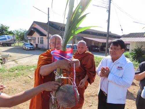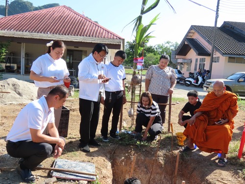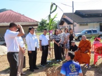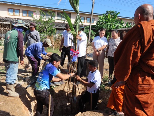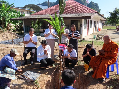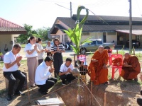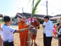 ร่วมพิธีทางศาสนาเพื่อขึ้นเสาเอกอาคารห้องน้ำ ณ หลังอาคารแผนกวิชาอาหารและโภชนาการ
