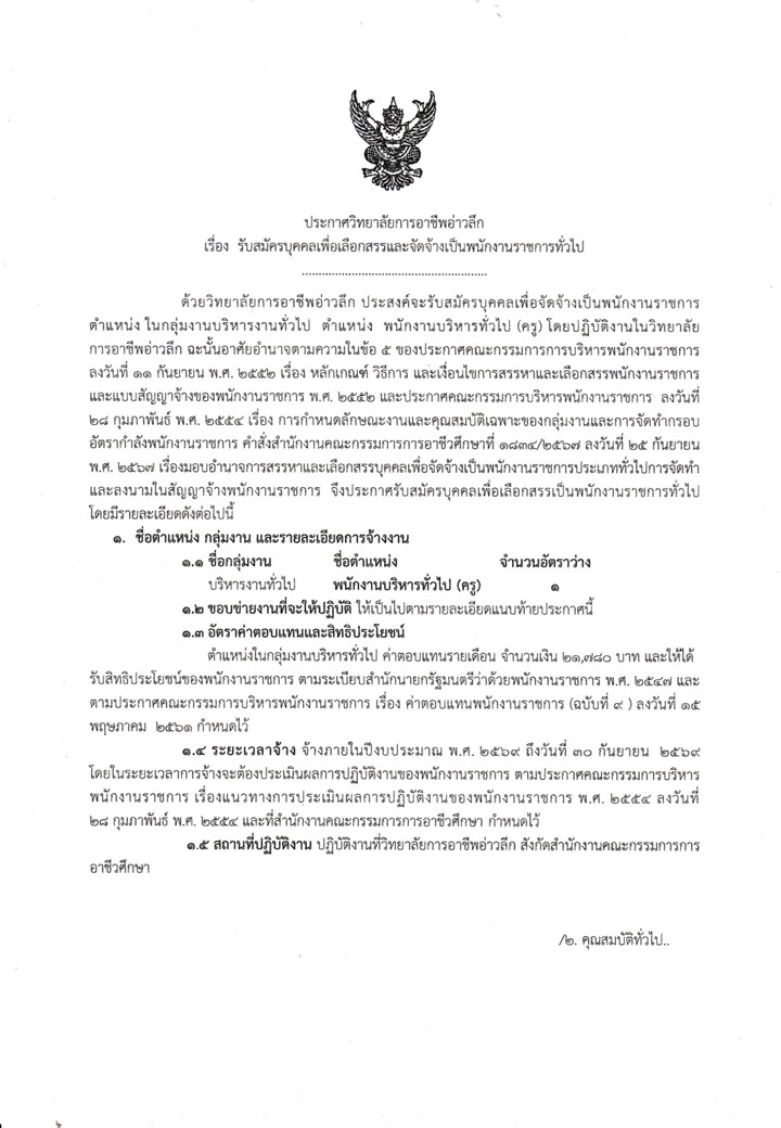 ประกาศ...เรื่อง รับสมัครบุคคลเพื่อเลือกสรรและจัดจ้างเป็นพนักงานราชการทั่วไป