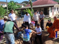 ร่วมพิธีทางศาสนาเพื่อขึ้นเสาเอกอาคารห้องน้ำ ณ หลังอาคารแผนกวิชาอาหารและโภชนาการ