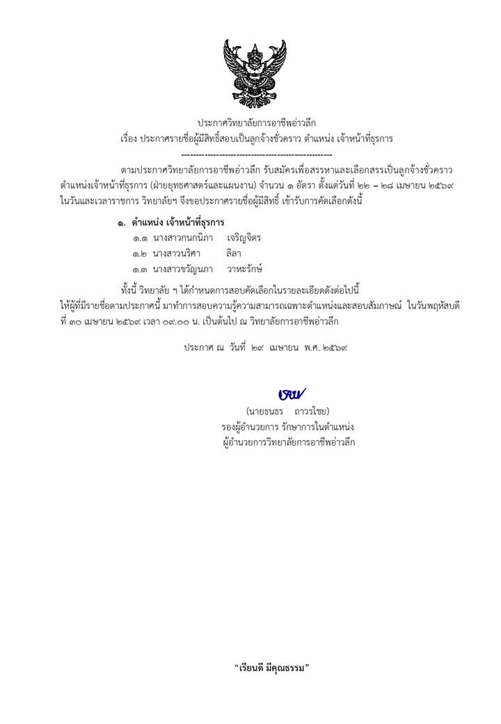 ประกาศ... ประกาศรายชื่อผู้มีสิทธิ์สอบเป็นลูกจ้างชั่วคราว ตำแหน่ง เจ้าหน้าที่ธุรการ